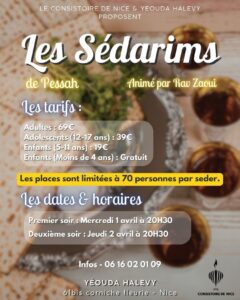 Le Grand Rabbin de Nice encourage les fidèles, hommes, femmes et enfants à approfondir la connaissance des ces lois dont beaucoup ont des incidences pour la cacherout en général, et afin d’éviter de transgresser les règles de Pessa’h par ignorance. Les rabbins, dans les synagogues, sont là pour guider les fidèles, sans oublier qu’il existe de bons ouvrages en français sur la question, mais comme dit notre tradition rien ne vaut un contact avec les érudits, « et que tes yeux voient tes maîtres ! »